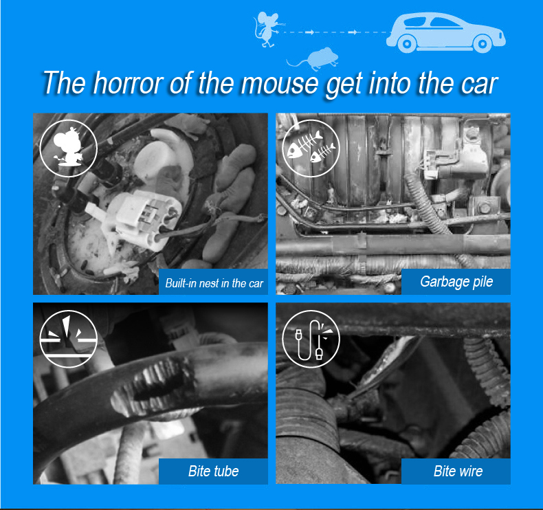 Car mouse repellent is an innovative solution designed to keep your vehicle free from unwanted rodent guests. Featuring three distinct power supply modes, this device offers versatility to suit various needs—from battery-operated convenience for on-the-go use to solar-powered efficiency for eco-conscious drivers. Whether parked at home, situated in a garage, or resting during a road trip, this repellent adapts seamlessly to multiple usage scenarios. Its compact design ensures it can fit snugly in your car without taking up valuable space, while its effective technology works silently to deter mice, giving you peace of mind during every journey. Say goodbye to detrimental rodent damage and hello to a safer, cleaner ride with this essential accessory!