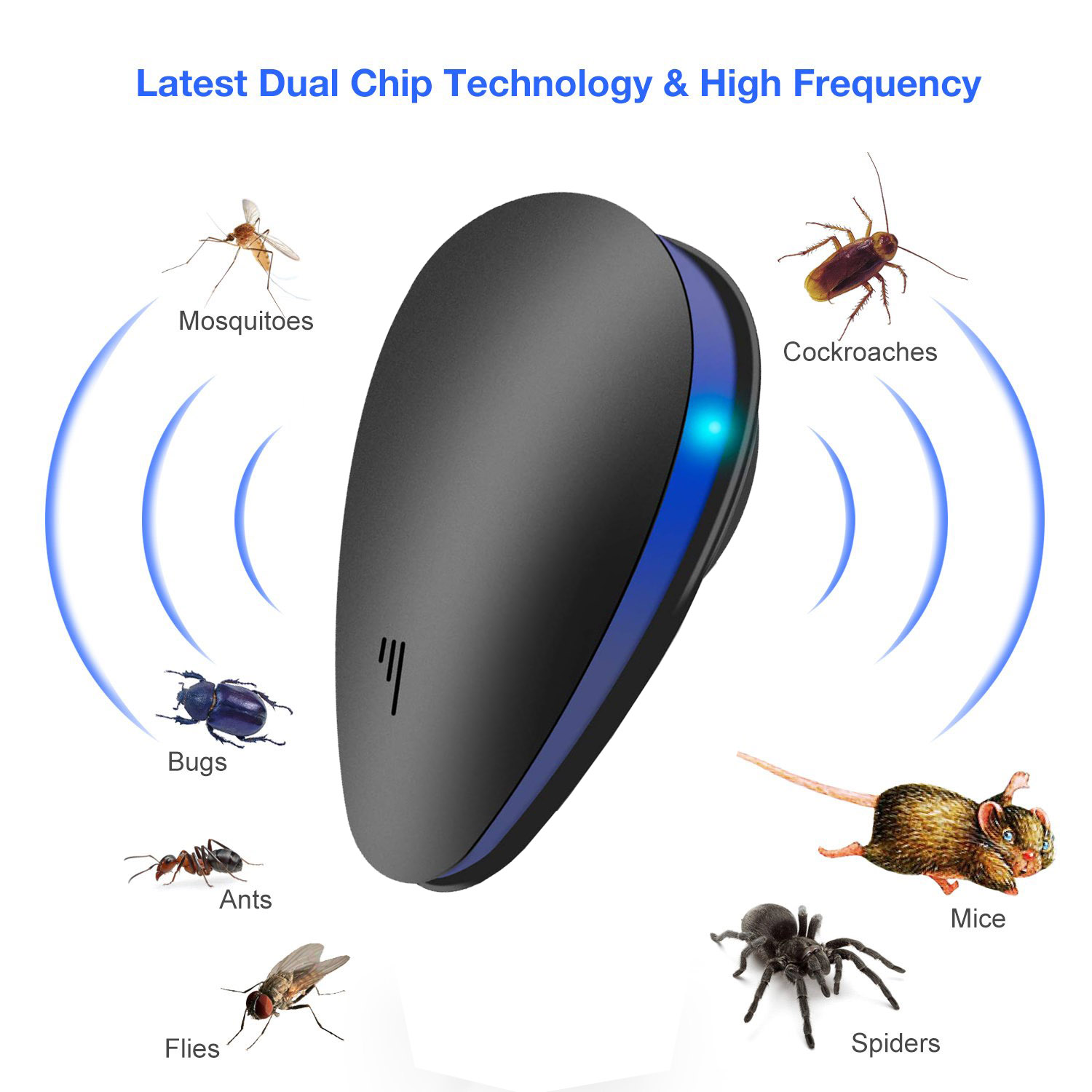 Experience a revolutionary way to keep your home pest-free with our Ultrasonic Pest Repeller. Featuring an elegant white housing and modern blue LED lights, this device is designed to blend seamlessly with any decor. The strategically placed vents ensure the ultrasonic waves are distributed effectively, providing superior pest control. Perfect for any room in your home, this compact and discreet repeller works tirelessly to keep unwanted pests at bay. Enhance your living space with a solution that's both aesthetically pleasing and highly functional.